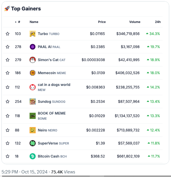 Tidak hanya itu, MEW juga masuk dalam top 10 aset kripto yang memiliki performa terbaik di 24 jam terakhir berdasarkan CoinGecko.