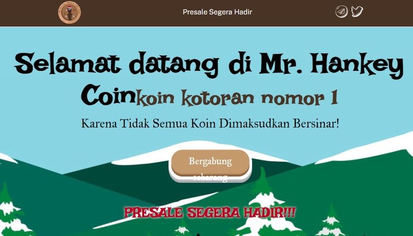 “Tunggu sampai Anda memegang Mr. Hankey Coin. Sistem ‘stink-nomics‘ kami yang unik memastikan Anda menuai imbalan, bisa dikatakan imbalan tersebut didapatkan dari setiap transaksi. Mekanisme pembakaran dan algoritme redistribusi kami mungkin omong kosong, tapi, itulah intinya!