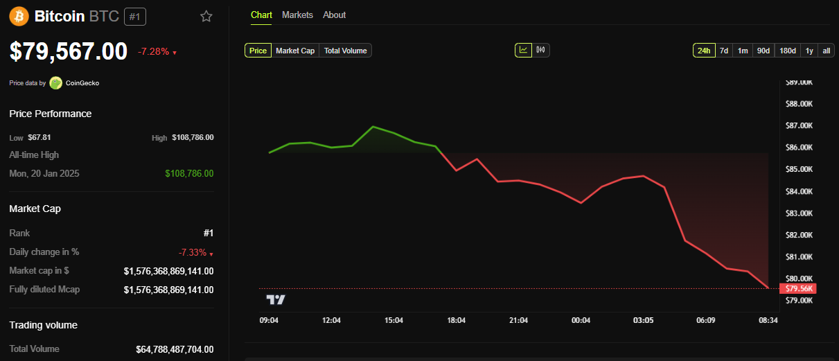 Harga Bitcoin (BTC) mencapai titik terendah dalam tiga bulan. Membalikkan keuntungan pasca-pemilu setelah kemenangan Donald Trump.