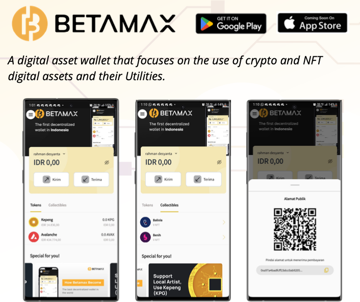 Selain itu, Anta menambahkan “Hal yang kita lihat lagi adalah ada juga sisi bahwa NFT itu bisa digunakan untuk berbagai hal, seperti hak akses semacam tiket, hingga sebagai fraction ownership. Makanya di Baliola sendiri, kita sekarang sedang getol-getolnya membicarakan NFT for utility. Sampai kita membuat sendiri crypto wallet namanya Betamax yang fokus untuk utilize NFT.”