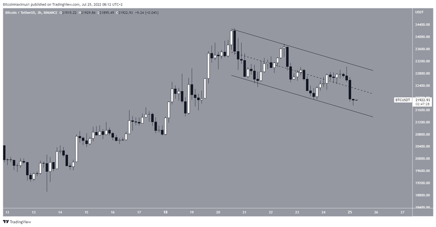 Sejak mencapai harga tertingginya pada tanggal 21 Juli lalu, Bitcoin telah diperdagangkan di dalam descending parallel channel, berdasarkan grafik dengan time frame tiga jamnya. Channel seperti itu biasanya berisi struktur yang bersifat korektif. Artinya, akan ada potensi breakout yang terbentuk dari area itu.