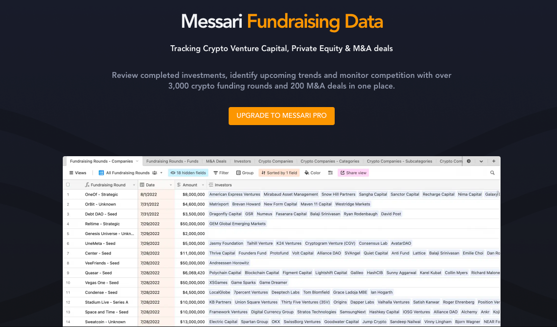 Dipercaya oleh berbagai perusahaan kripto papan atas termasuk Coinbase, Gemini, hingga Chainalysis, Messari didirikan pada Januari 2018. Berdasarkan data Crunchbase, Messari telah mengumpulkan total pendanaan senilai US$26 juta (Rp387,11 miliar).