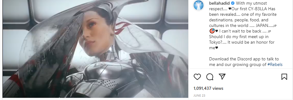Dunia metaverse bakal semakin bertabur bintang. Setelah Snoop Dog, Paris Hilton, dan beberapa pesohor kenamaan Hollywood lainnya resmi memasuki metaverse; kali ini, Isabella Khair Hadid atau yang kerap disapa Bella Hadid juga mengonfirmasi bahwa dirinya bakal memasuki dunia virtual ini. Bella Hadid menandai kehadirannya di metaverse dengan peluncuran 11.111 koleksi non-fungible token (NFT).