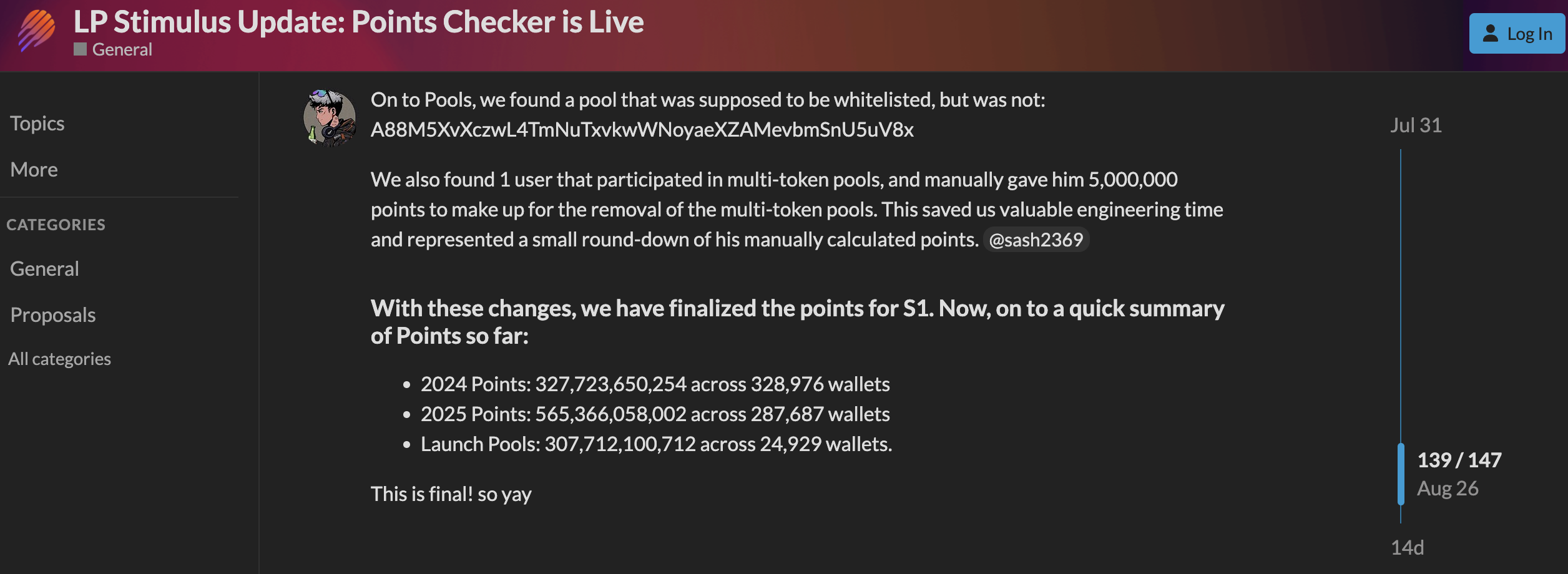 Alokasi ini menyoroti ketidakseimbangan konsentrasi yang signifikan. Sementara ratusan ribu wallet menerima poin dari aktivitas reguler, hanya sekitar dua puluh lima ribu dalam pool peluncuran yang menangkap bagian yang sangat besar.