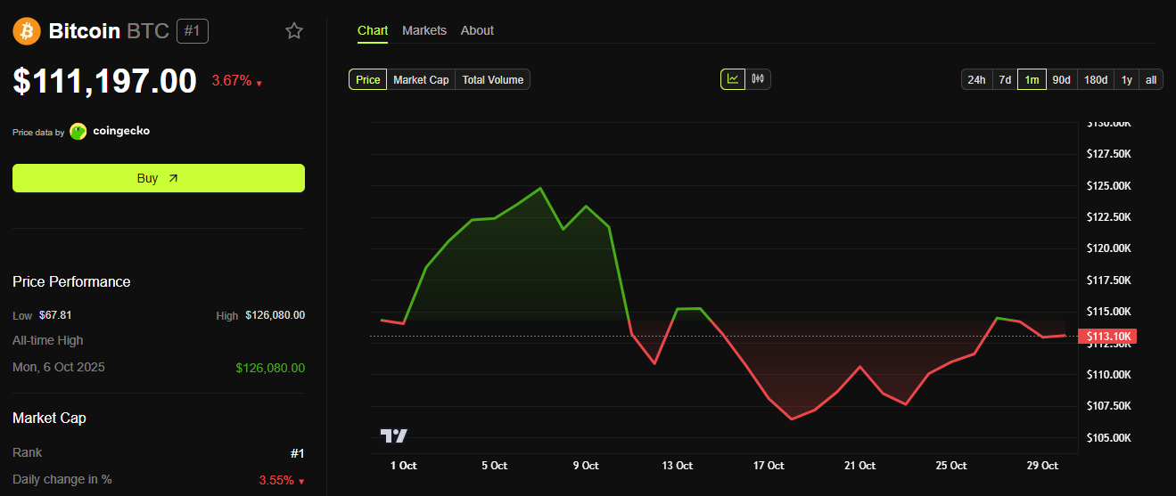 Harga Bitcoin saat ini parkir di kitaran US$111.000, dengan volume trading dan funding rate futures menukik tajam ketimbang awal Oktober.