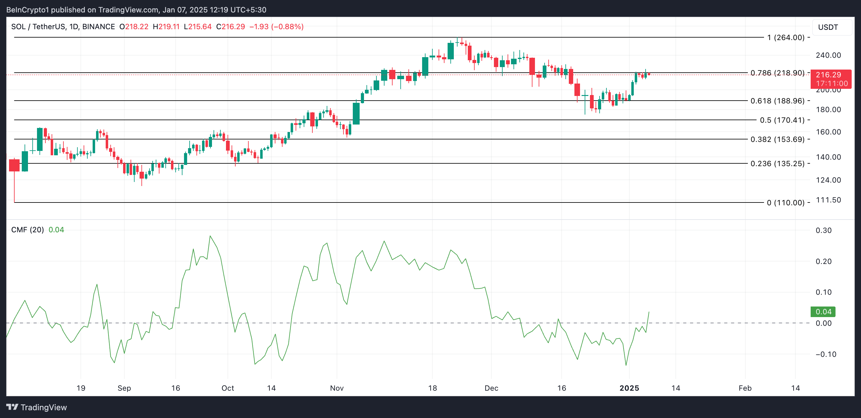 Dengan tekanan beli yang meningkat, harga SOL berpeluang menembus resistance di US$218,90. Jika berhasil melewati level ini, akan membuka jalan untuk potensi kunjungan kembali ke rekor tertingginya di US$264.