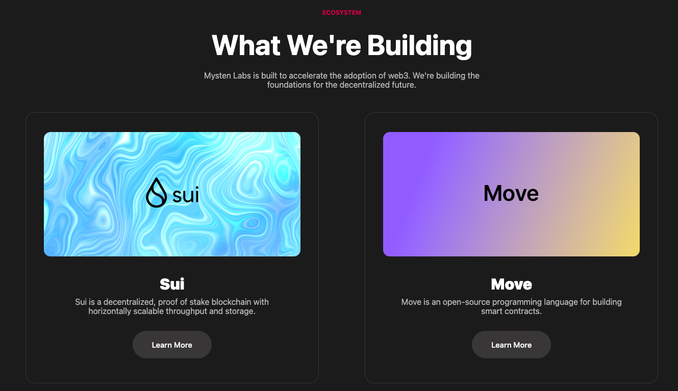 Diluncurkan pada tahun 2021 oleh para mantan eksekutif Novi Financial serta arsitek utama dari blockchain Diem (sebelumnya Libra) dan bahasa pemrograman Move, Mysten Labs sedang membangun fondasi untuk masa depan yang terdesentralisasi. Sebagai informasi, baik Novi, Diem, hingga Move, merupakan inisiatif proyek kripto dari Meta Platforms (induk perusahaan Facebook, Instagram, & WhatsApp).