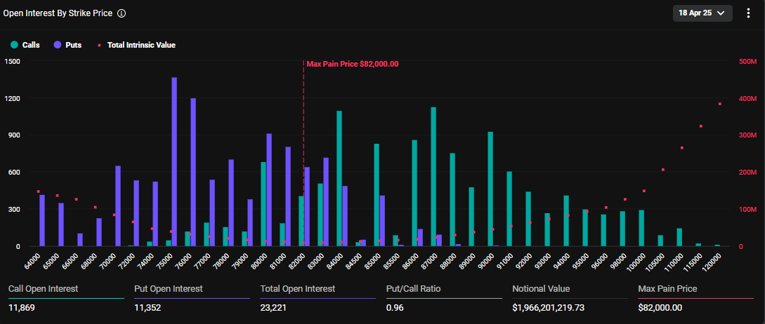 Saat opsi Bitcoin kedaluwarsa, harga maximum pain atau harga strike-nya adalah US$82.000; pada titik ini, aset tersebut akan menyebabkan kerugian finansial terbesar bagi holder-nya.
