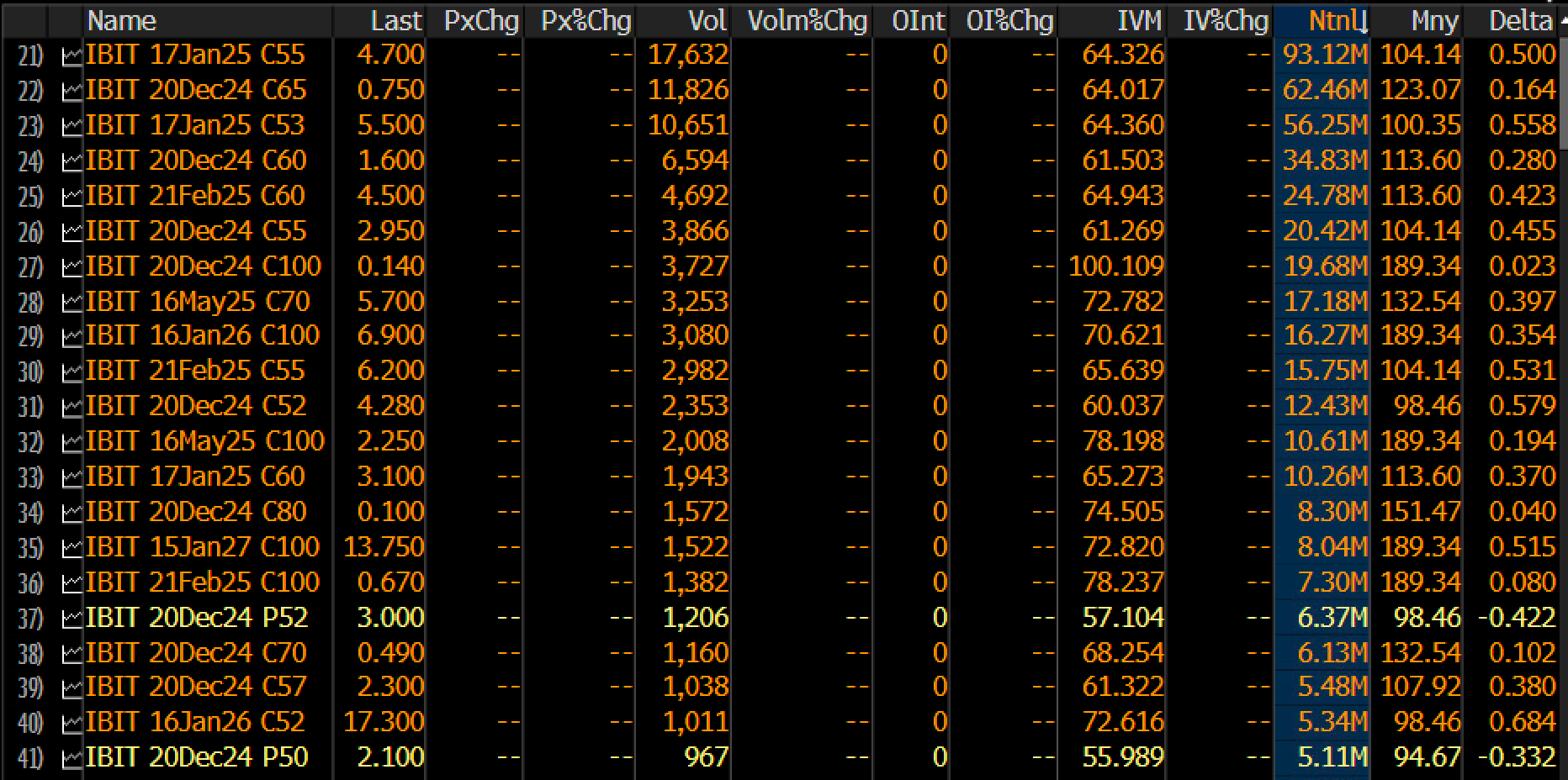 “Beberapa ratus juta sejauh ini dalam volume opsi pada IBIT (a ton for Day One). Termasuk peringkat kontrak berdasarkan volume, hampir semuanya adalah opsi beli. Sepertinya sangat bullish, terutama Desember 20 C100, yang pada dasarnya bertaruh harga BTC akan berlipat ganda dalam bulan depan,” ujar Balchunas.