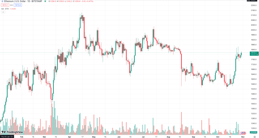 Menurut sang ahli, analisis teknikal aset ini mengungkapkan koreksi naik yang besar sejak penurunan harga ETH antara bulan November 2021 dan November 2022. Sejalan dengan koreksi ini, harga ETH dapat meningkat menjadi antara US$2.200 hingga US$2.500
