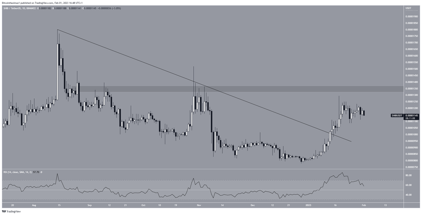 Sementara itu, analisis teknikal dari grafik harian Shiba Inu menunjukkan bahwa harganya berhasil menjebol garis descending resistance pada 13 Januari. Setelah itu, harga SHIB mencetak titik tertinggi US$0,0000129 lima hari kemudian. Akan tetapi, sejak itu juga harganya terus mengalami penurunan.