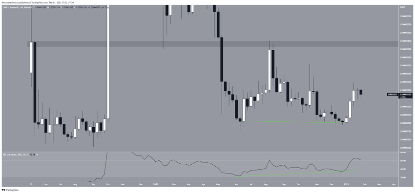 Hasil analisis teknikal time frame mingguan untuk harga SHIB adalah bullish. Ada dua alasan utama di balik proyeksi bullish ini:
