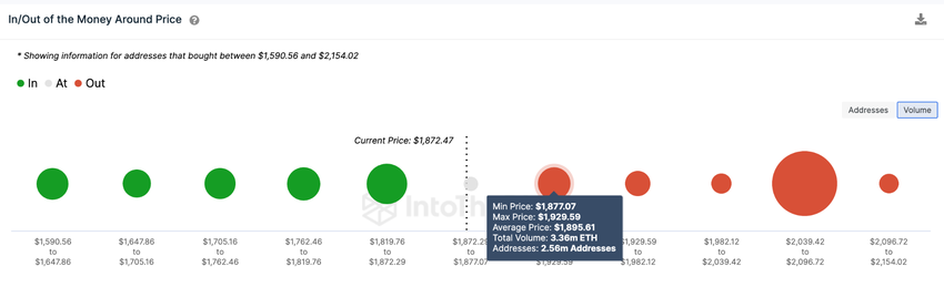 Namun, data Global In/Out of The Money Around Price (IOMAP) IntoTheBlock mengindikasikan ETH harus menghadapi resistance awal di kisaran US$1.900.