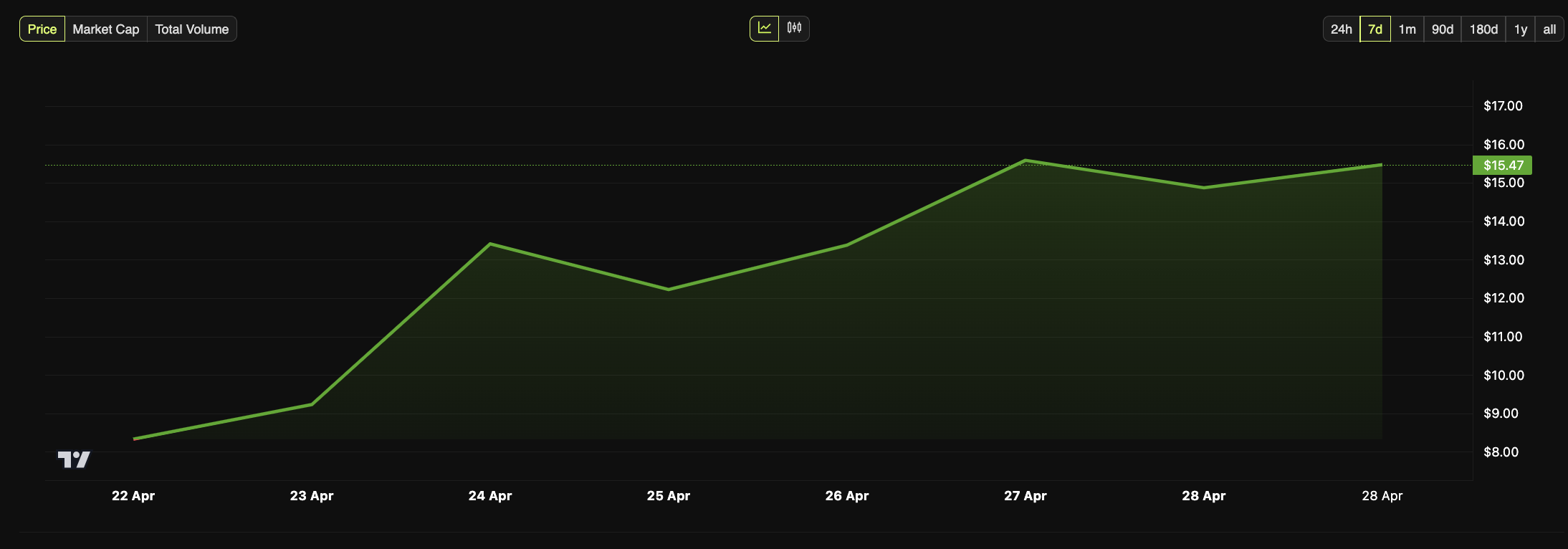 Meski ada aktivitas ini, TRUMP menunjukkan sinyal kinerja positif di pasar. Menurut data dari BeInCrypto, harga TRUMP melonjak 84% selama tujuh hari terakhir, melampaui banyak aset kripto lainnya.