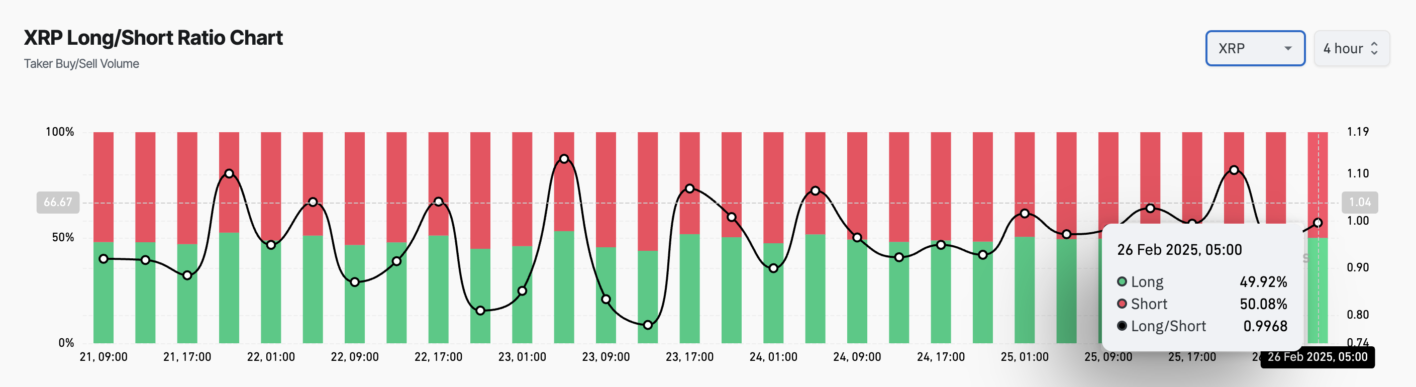 Rasio long/short suatu aset membandingkan jumlah posisi long (taruhan bahwa harga akan naik) dengan posisi short (taruhan bahwa harga akan turun) di pasar. Ketika rasio di atas 1, ada lebih banyak posisi long daripada short, menunjukkan bahwa lebih banyak trader bertaruh pada kenaikan harga.