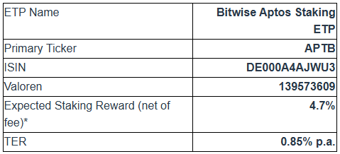 Bitwise Asset Management, perusahaan investasi aset digital terkemuka, telah mengumumkan peluncuran produk Aptos Staking ETP (exchange-traded product) pertama di dunia.