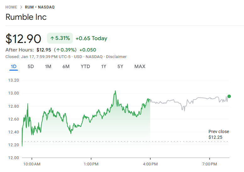 Setelah pengumuman tersebut, saham Rumble melonjak lebih dari 5%. Perusahaan yang diperdagangkan secara publik dan bernilai US$3,6 miliar ini bergabung dengan daftar perusahaan lain yang mengintegrasikan Bitcoin ke dalam strategi keuangan mereka.