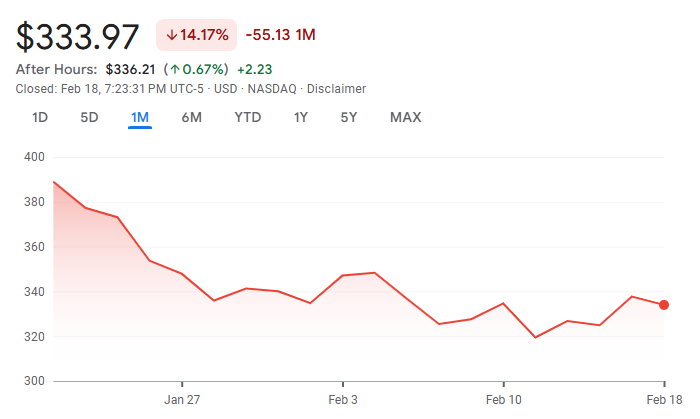 Sementara itu, harga saham MSTR juga berkinerja buruk baru-baru ini. Harganya tetap turun hampir 15% dalam sebulan terakhir.