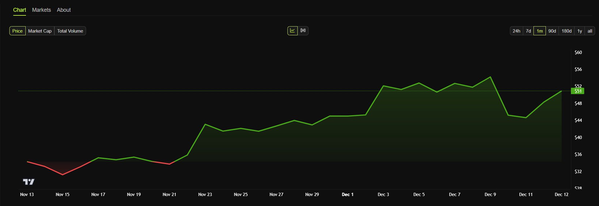 Di bulan Desember, token ini berhasil melewati US$50 namun nampaknya stagnan di sekitar US$52 setelah gagal bertahan di atas US$54 pada 9 Desember. Jika momentum setelah pengumuman ini bertahan, AVAX bisa melampaui US$60 dan merebut kembali level tertingginya sebelumnya.