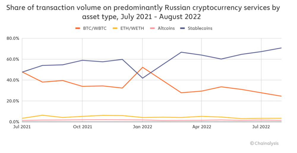 Perusahaan analitik blockchain Chainalysis melaporkan bahwa penggunaan stablecoin meningkat di Rusia setelah menerima berbagai sanksi dari barat karena melakukan operasi militer ke Ukraina.