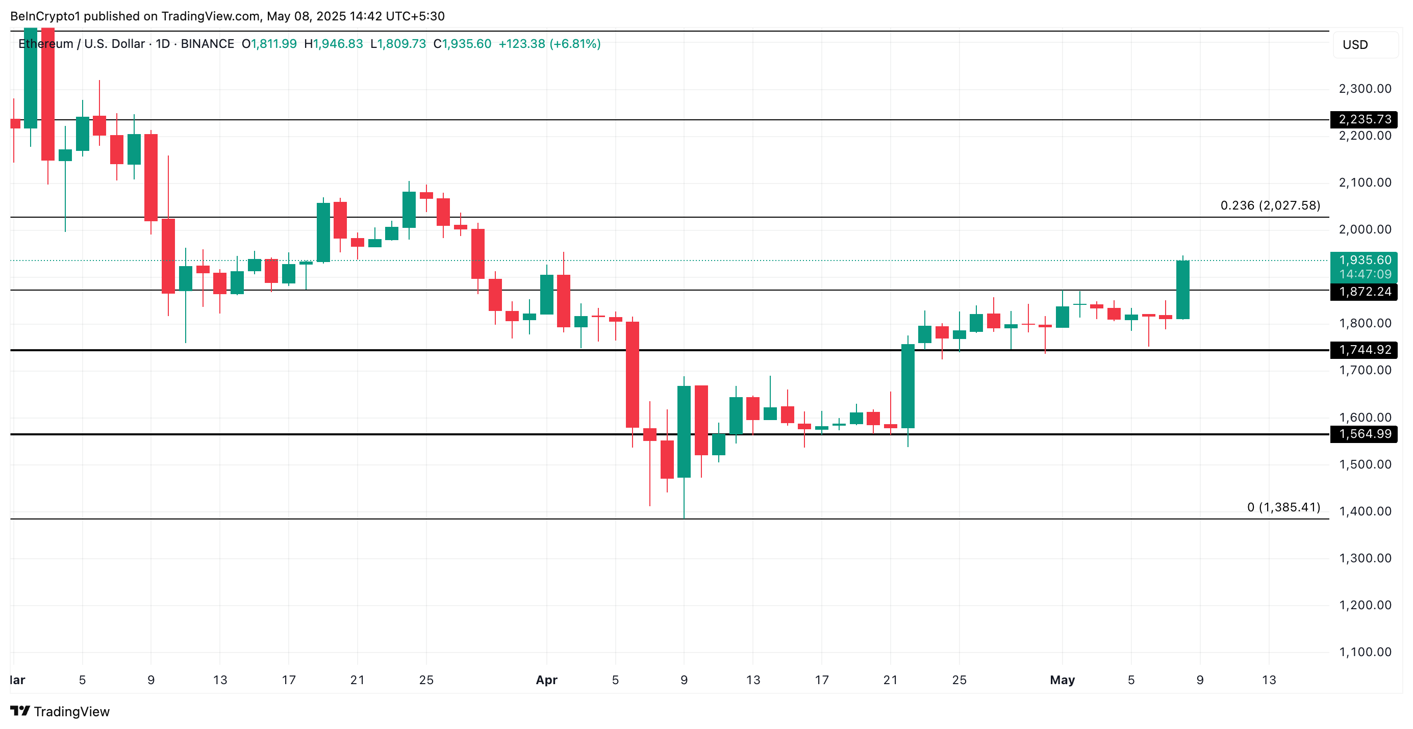 Jika breakout berlanjut, ETH bisa merebut kembali zona harga psikologis US$2.000 dan melanjutkan reli menuju US$2.235.