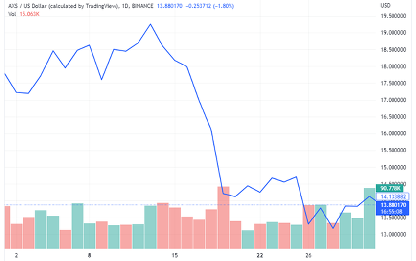 Sementara itu, AXS mulai diperdagangkan pada tanggal 1 Agustus di level US$18,10. Kemudian, berhasil menanjak dan mencapai level tertinggi bulanannya di titik US$19,46. Meskipun demikian, AXS sempat anjlok dan menguji titik terendah bulan ini di level US$13,04. Lalu, akhirnya, menutup bulan yang sama dengan kenaikan sedikit menjadi US$14,14.