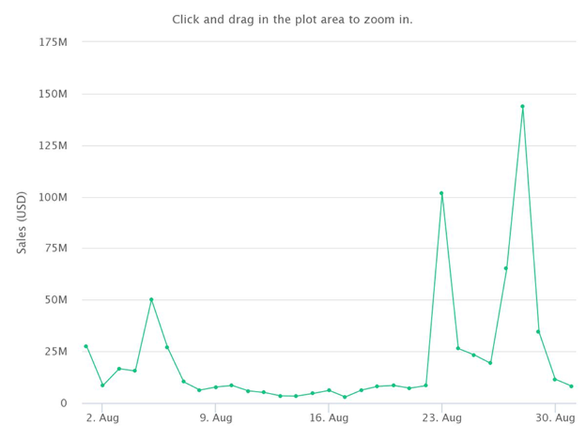 Selain itu, nilai penjualan rata-ratanya di bulan Agustus juga telah meningkat sebesar 82% dari bulan Juni lalu, yang berjumlah sebesar US$86.930.