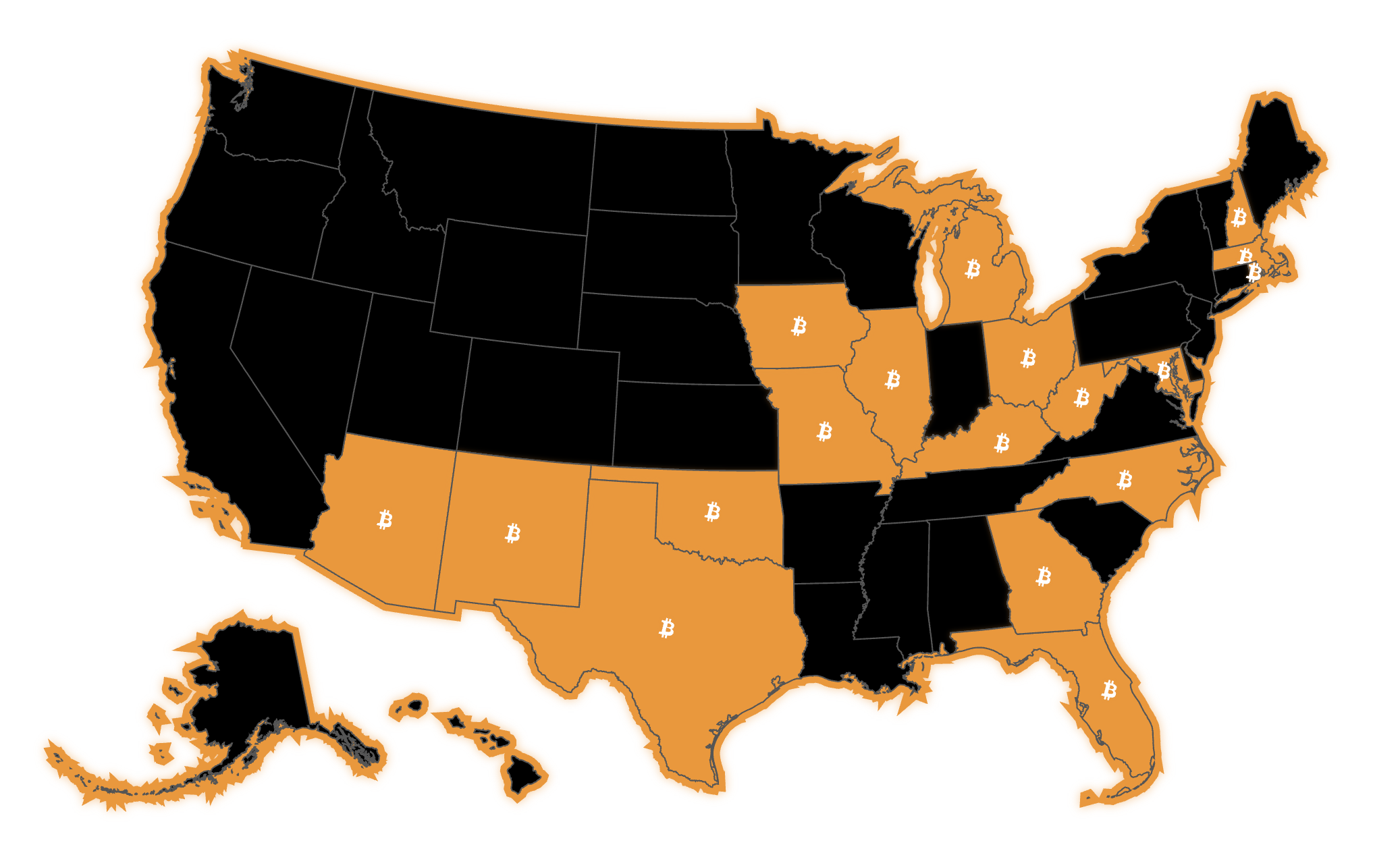 Menurut Bitcoin Laws, total 33 rancangan undang-undang cadangan Bitcoin diperkenalkan di 23 negara bagian. Namun, Montana, Wyoming, North Dakota, Mississippi, dan Pennsylvania telah menolak undang-undang yang akan memungkinkan investasi negara bagian dalam aset digital, termasuk Bitcoin.