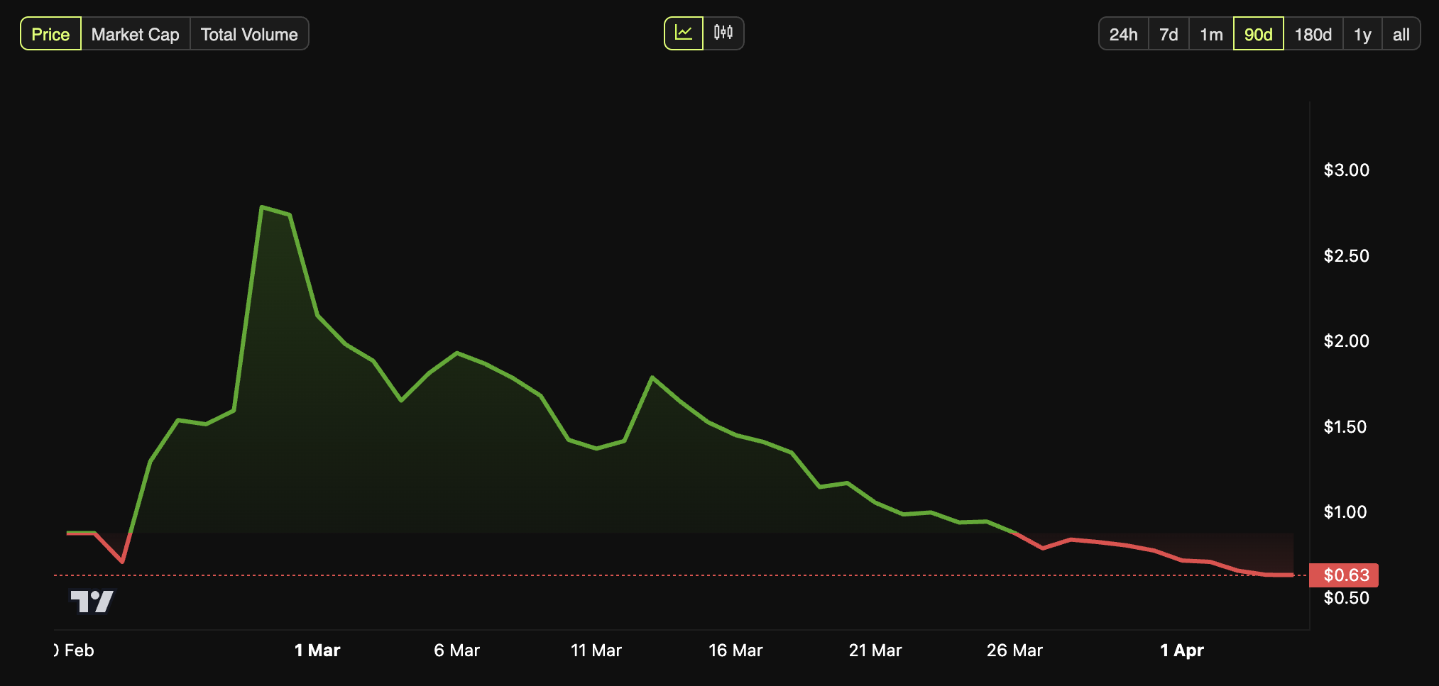 Pada waktu publikasi, harga perdagangan Pi Coin adalah US$0,6, turun 8,2% dalam sehari terakhir. Selain itu, selama 30 hari terakhir, token ini mengalami penurunan signifikan sebesar 64,5%.