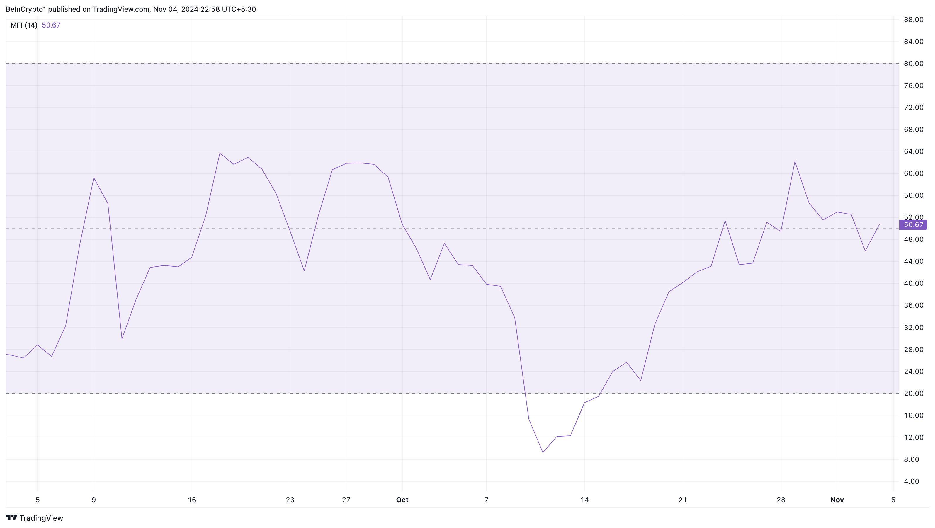 SponsoredLebih lanjut, Money Flow Index (MFI) mendukung potensi reli ini. Osilator ini mengukur tekanan beli dan jual, dengan nilai MFI yang meningkat menunjukkan minat beli yang lebih kuat dan nilai yang menurun mencerminkan tekanan jual yang meningkat.
