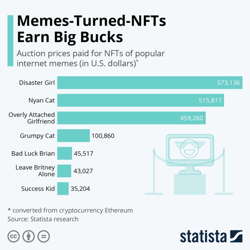 Integrasi meme dengan non-fungible token (NFT) menggarisbawahi pengaruh dominan meme dalam domain Web3.