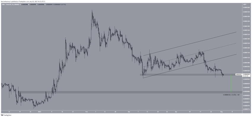 Harga Shiba Inu (SHIB) telah mengalami breakdown dari ascending parallel channel pada tanggal 20 April lalu. Hal ini menunjukkan bahwa struktur sebelumnya sudah tidak berlaku lagi dan pergerakan turun yang baru sudah dimulai.