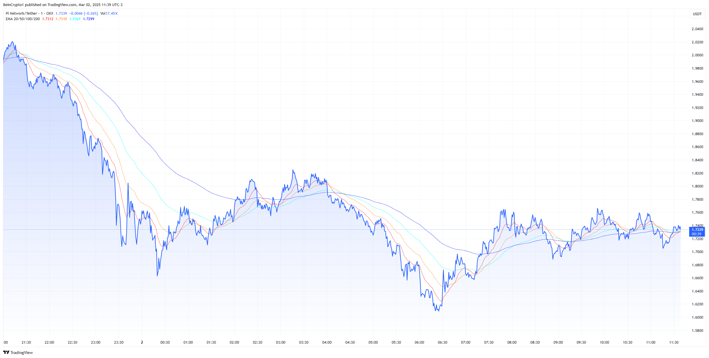 Baru sepekan setelah debutnya, Pi sempat meroket ke harga tertinggi sepanjang masa (ATH) di US$2,98, menguat 20% dalam sepekan terakhir. Namun kini, token ini bertengger di kisaran US$1,75—terpangkas lebih dari 40% dari level tertingginya.
