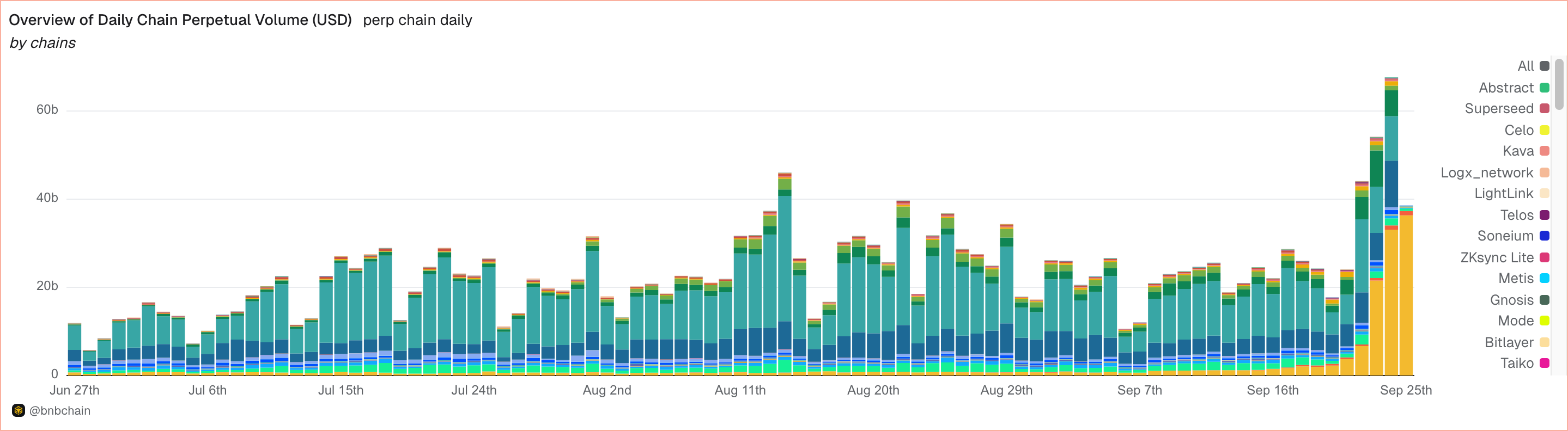 Dashboard Dune menunjukkan volume harian perp di atas US$67B pada bulan September. Hyperliquid, Aster, dan Lighter masing-masing mencapai US$10B, memicu perdebatan tentang kemungkinan wash trading.