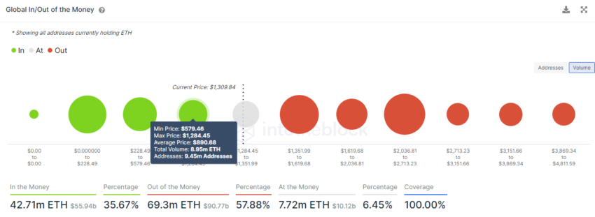 Sementara itu, titik US$890 akan berperan menjadi area support solid berikutnya untuk harga ETH. Pada level ini, 8,95 juta ETH dipegang oleh 9,45 juta alamat. Harga ETH saat ini tengah berjuang di level US$1.280. Akan tetapi, jika terjadi tren turun dari zona tersebut, maka kemungkinan akan memicu pengujian ulang level support yang lebih rendah di titik US$890.