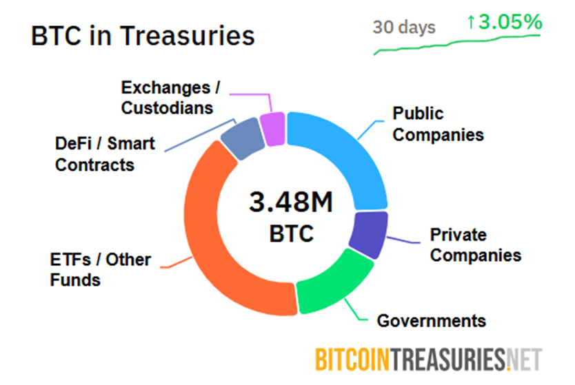 ETF masih memegang lebih banyak dalam istilah absolut (sekitar 1,4 juta BTC atau 6,8%), namun momentum pembelian perusahaan lebih kuat dalam beberapa kuartal terakhir.