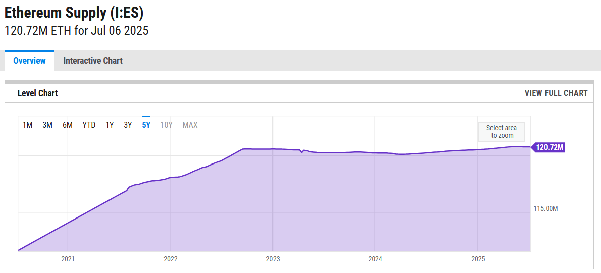 Sejak upgrade Merge Ethereum pada September 2022, jaringan ini telah mengurangi penerbitan ETH secara tajam. Data Ycharts menunjukkan bahwa penerbit hanya mengedarkan sekitar 300.000 ETH baru setelah upgrade ini.