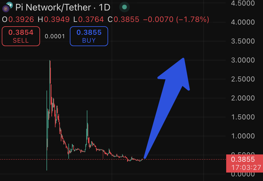Dari sudut pandang teknis, struktur harga Pi menyerupai altcoin yang sedang mengalami akumulasi sebelum reli breakout.