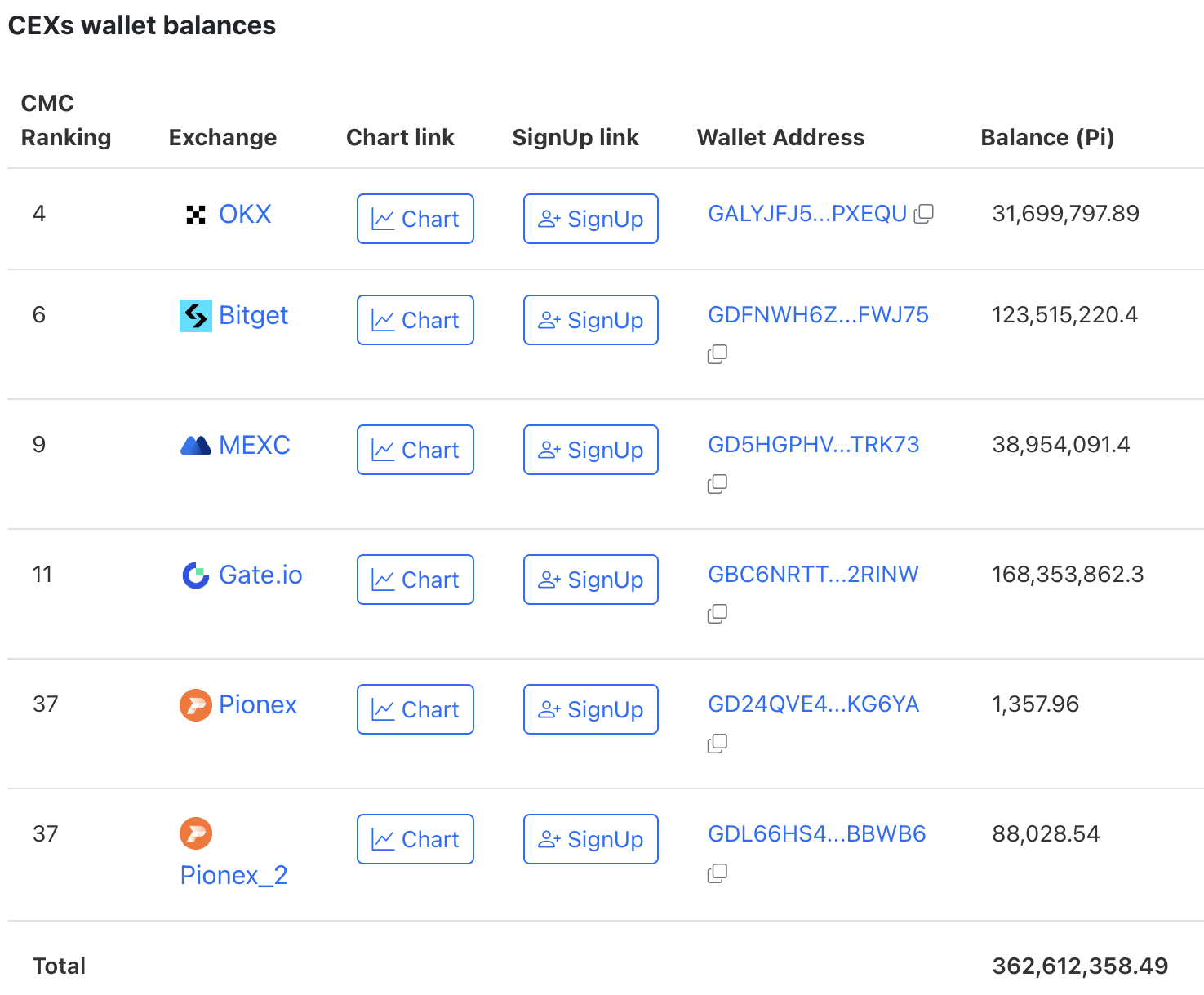 Penurunan harga Pi Coin menjadi semakin parah dengan adanya lonjakan pasokan token di centralized exchange (CEX). Menurut data PiScan, pasokan naik menjadi 362 juta PI dari 345 juta pada minggu sebelumnya.