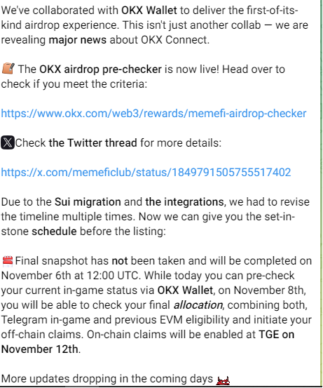 Berdasarkan channel Telegram MemeFi terungkap bahwa, proyek tersebut juga sudah menggandeng OKX Wallet untuk memberikan pengalaman airdrop pertamanya.