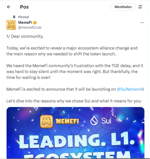 Keputusan itu berjalan setelah tim MemeFi menjalin kerja sama degan Mysten Labs, tim di balik blockchain SUI. Perusahaan memandang, SUI Sebagai jaringan blockchain, menawarkan biaya transaksi yang lebih murah dengan skalabilitas tak terbatas.