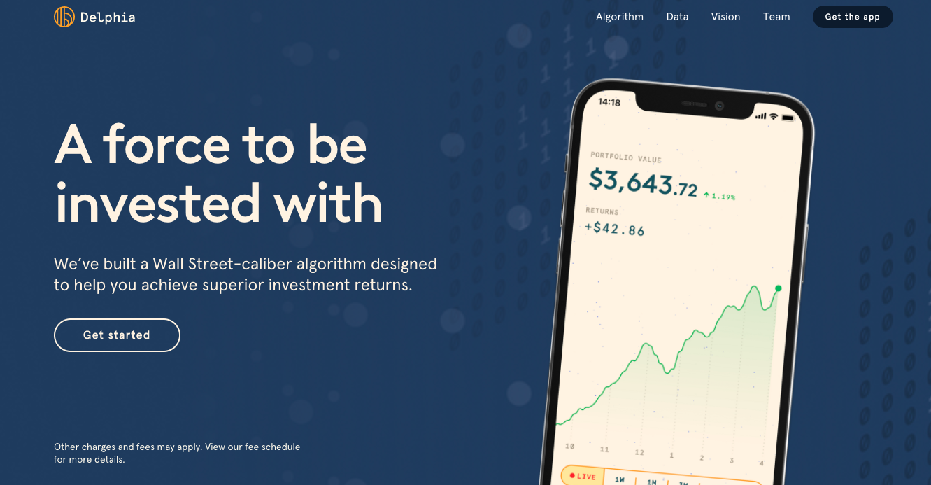 Delphia menawarkan strategi investasi jangka panjang yang dikelola secara aktif dengan biaya manajemen nol dan minimum investasi US$10 (Rp145.133). Mereka juga menawarkan layanan hedge fund atau dana lindung nilai untuk para investor terakreditasi yang menjalankan long-short market neutral strategy pada sekitar 2.500 ekuitas di Amerika Serikat (AS).