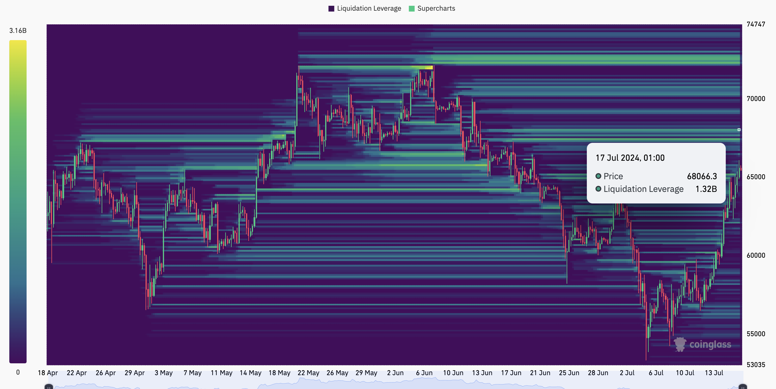 Jika likuiditas terkonsentrasi di area tertentu, harga aset kripto ini kemungkinan akan bergerak menuju zona tersebut. Menurut data yang diperoleh dari Coinglass, harga Bitcoin mungkin bakal menjangkau US$67.469 dan kemudian menuju US$68.000.