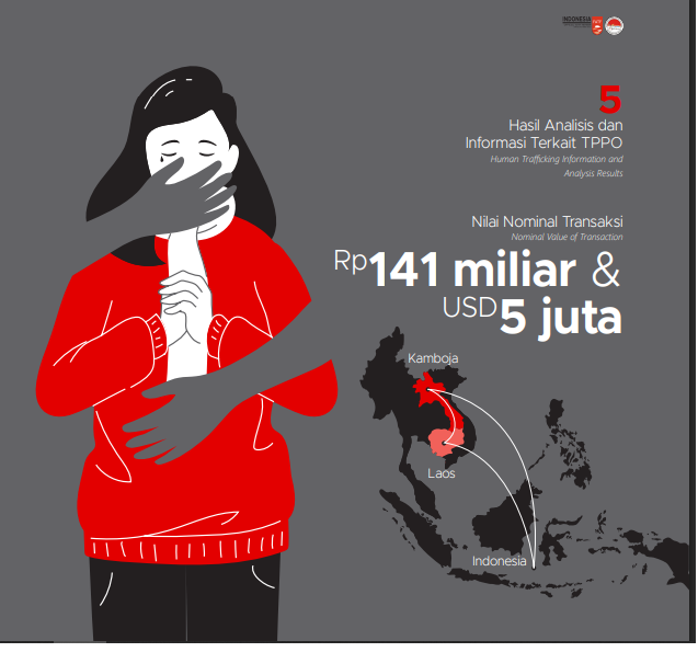 Dugaan tersebut bersandar pada keterangan transaksi yang menunjukkan kegiatan perekrutan, penampungan dan pemberangkatan korban TPPO dengan indikasi nominal TPPO sebesar Rp141 miliar dan US$5 juta.