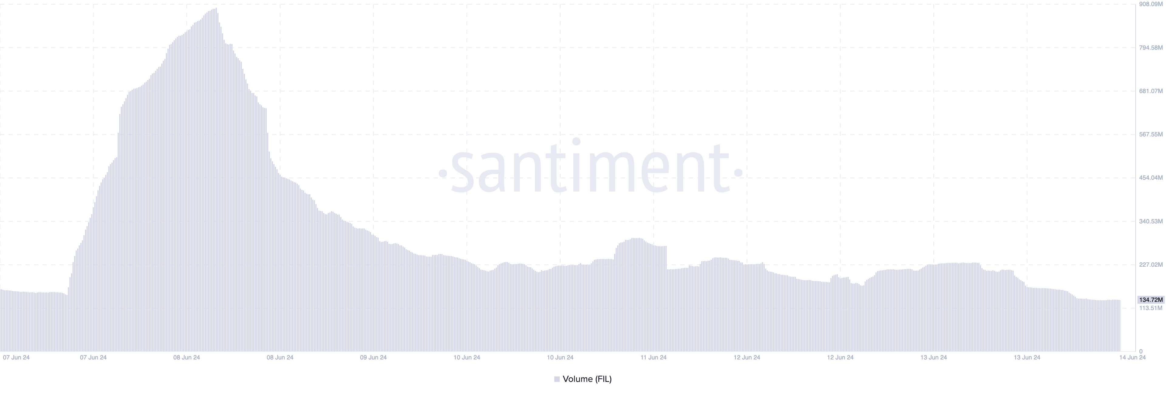 BeInCrypto telah mengevaluasi volume Filecoin. Sebagai informasi, volume sendiri mengacu pada nilai aset kripto yang diperdagangkan dalam periode tertentu, termasuk pembelian dan penjualan. Pada saat publikasi, volume FIL adalah US$134,97 juta, turun dari puncaknya US$899,10 juta pada 8 Juni.