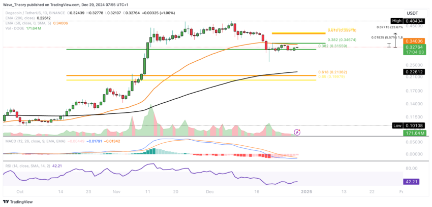 Mampukah Harga Dogecoin Terobos Level Resistance Fibonacci 0,382 di Kisaran US$0,347?