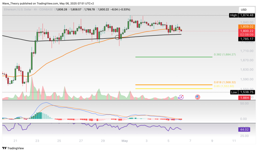 Selama empat pekan terakhir, harga Ethereum telah menguat sekitar 35%. Kini, ETH menyentuh resistance EMA 50 hari di kisaran US$1.852, di mana harganya terlihat mengalami penolakan bearish.