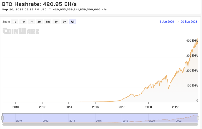 Hash rate Bitcoin berkitar di rekor tertinggi sepanjang masa | Sumber: CoinWarz
