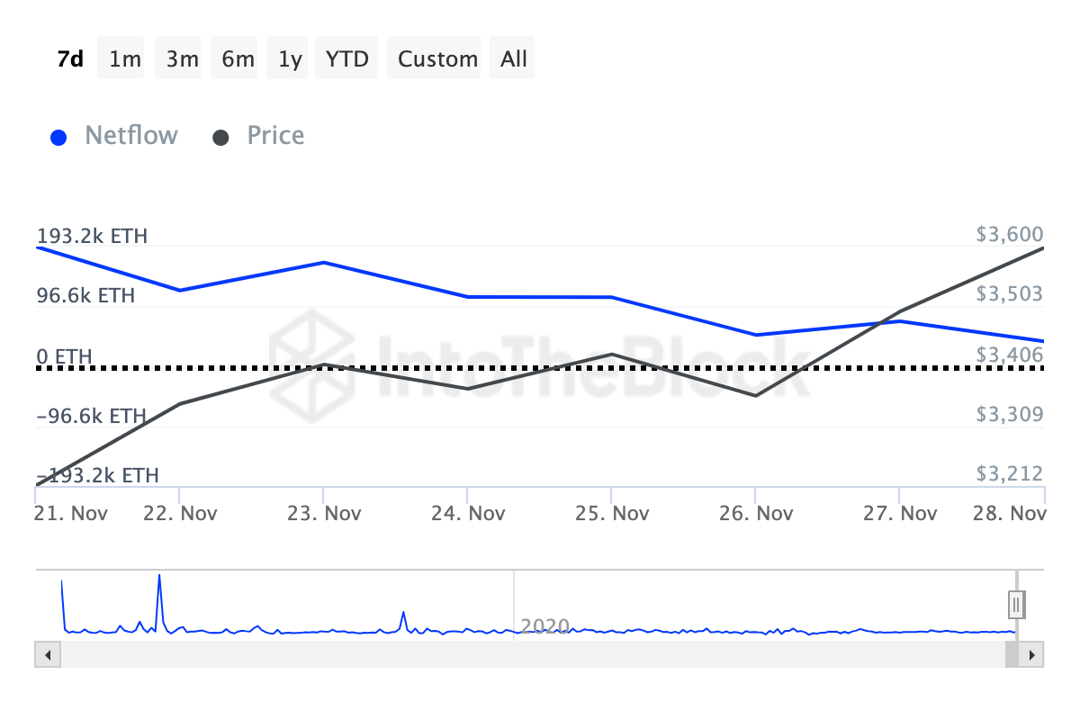 Namun, hingga saat ini, arus bersih holder besar Ethereum telah bergerak menukik. Kondisi ini mencerminkan bahwa crypto whale tidak lagi mengakumulasi sebanyak beberapa hari yang lalu. Jika ini tetap sama, harga ETH bisa jadi bakal kesulitan mencapai target US$4.000 bulan depan.