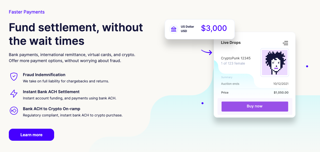 Memanfaatkan platform pencegah penipuan dan kepatuhannya, Sardine mengubah cara perusahaan memindahkan uang melalui penawaran penyelesaian instan. Mereka menawarkan instant ACH (Automated Clearing House) yang mentransfer uang dari satu rekening ke rekning bank lain serta card on-ramp to crypto yang memungkinkan menukarkan fiat dengan kripto.